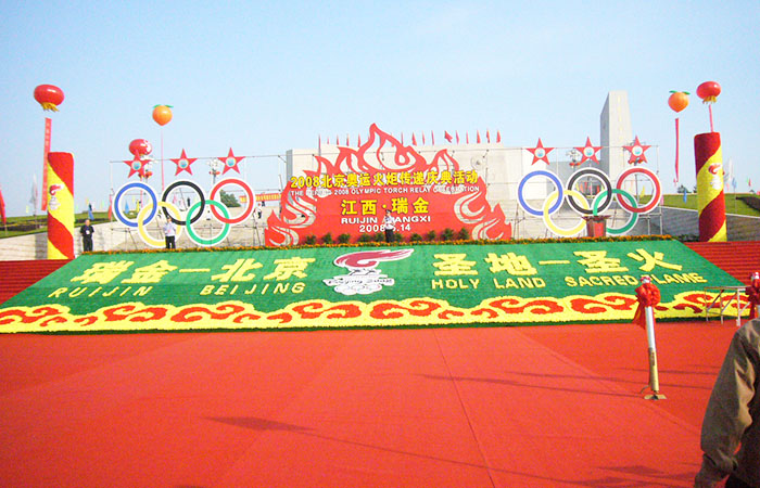 2008年05月14日7时40分 ,北京 奥运 会 圣火在叶坪红军广场开始了瑞金境内的传递之旅。 77年前,中国第一个红色政权在此诞生,革命之火在这个赣南小城熊熊燃烧。77年后的今天,奥运圣火即将在这里进行传递,革命的火种和奥运的圣火在这里跨越历史时空而相遇。 [查看详细]